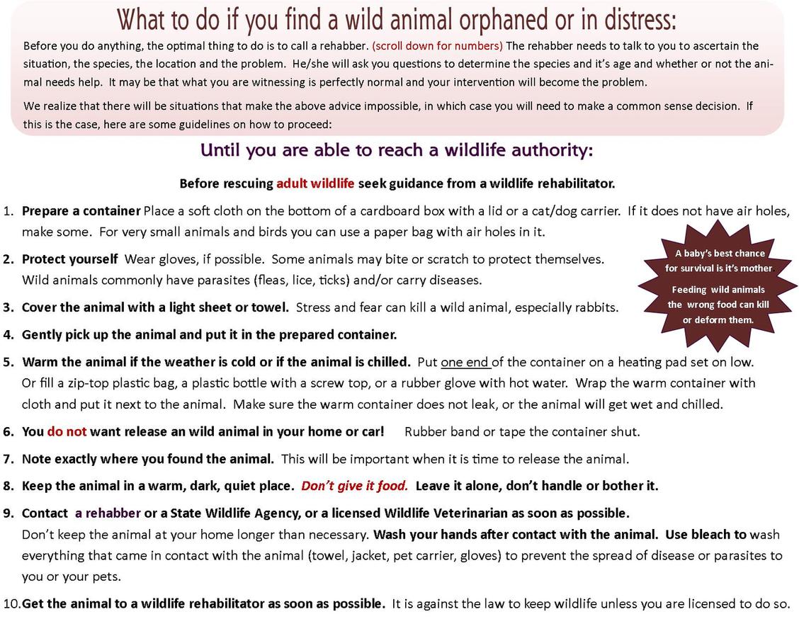 Please take time to read this page before you decide what to do next. If the animal is a baby, scroll all the way down and read what to do.